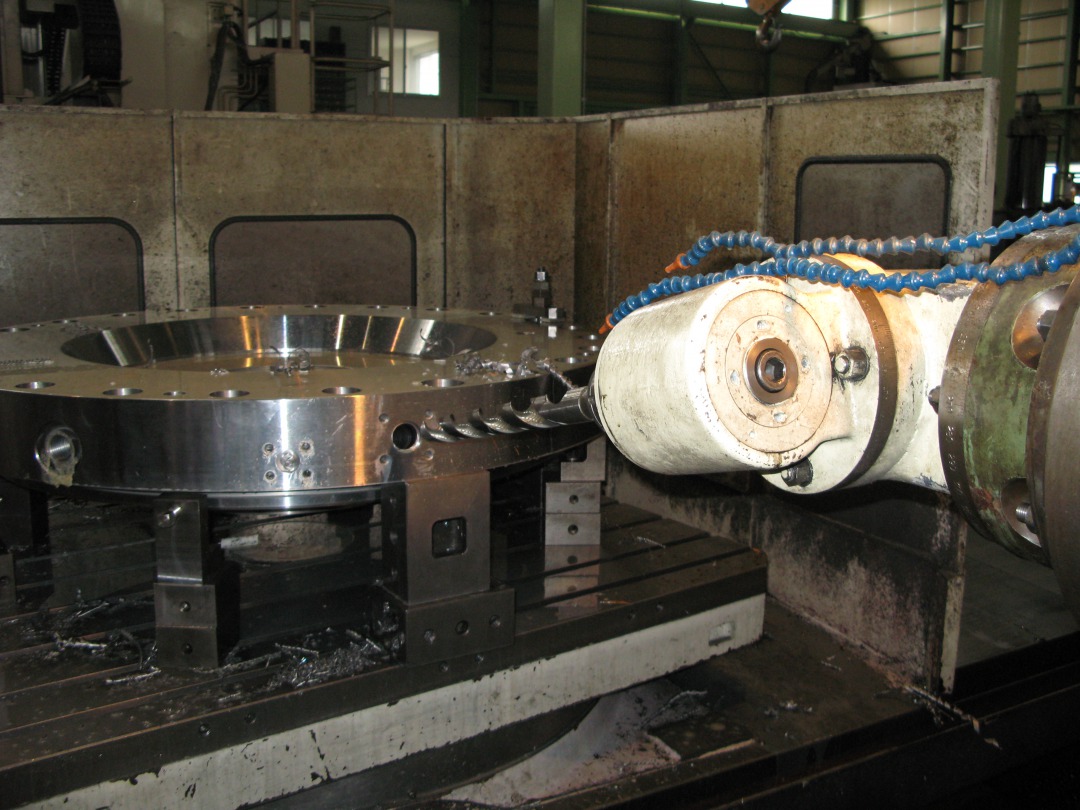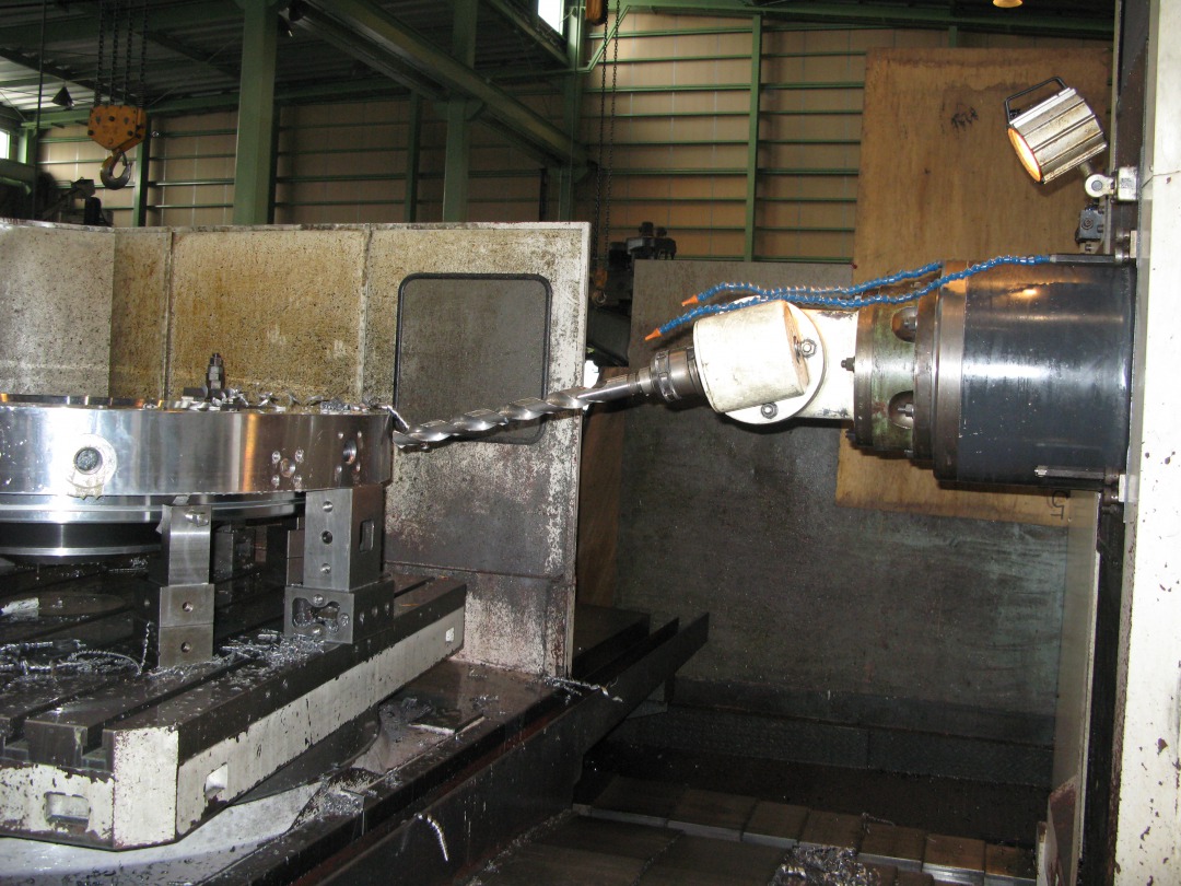 自社製ユニバーサルアングルヘッドによる斜め穴加工